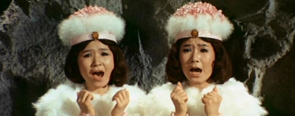 A raging typhoon results in a massive, candy-coloured egg being washed ashore near a fishing village on Kurata Beach. Obviously, as this isn’t generally an everyday occurrence, interest is stoked but when reporter Ichiro Saki and photographer Junko Nakanishi arrive on the scene, they are surprised to find out that the desperate villagers have sold the egg to rather shifty representatives of Happy Enterprises, a company owned by a business tycoon who intends to charge for the privilege of seeing it. The Shobijn, a pair of doll sized priestesses of Mothra – the God Of Infant Island from where the egg originally came – appear to beg for it’s return as keeping it disrupts the life cycle of their huge fluffy deity. However, the request from the teensy twins is predictably denied because rich equals bad – obviously.