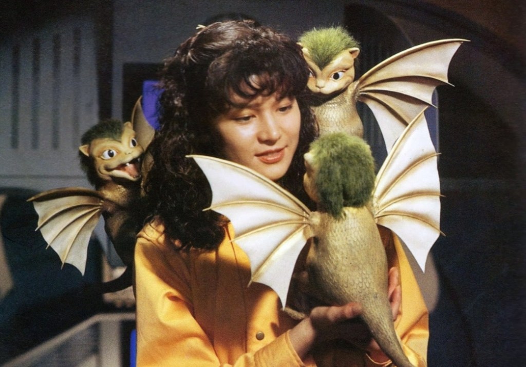 A deal is struck with the Futurians (one of whom looks distractingly like Ralph Malph from Happy Days) to go back in time and remove Godzillasaurus from the island before the nuclear blast occurs to stop him becoming mutated and with the aid of their lantern-jawed cyborg operative, M-11, the mission is successful and Godzilla is never created (even though everyone somehow still remembers him). But due to a double cross by the time travelers, who have been lying about their motives all along, the blast instead mutates some cuddly creatures planted there in Godzilla’s place named Dorats to become King Ghidorah who will bring about the destruction of Japan that the Futurians actually desire.