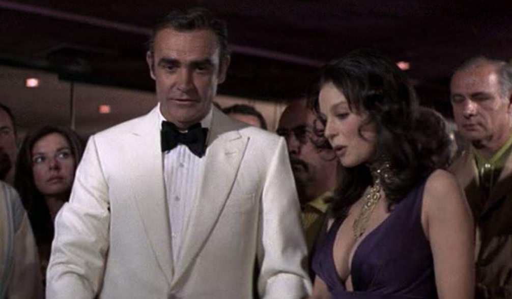 After the attempt to introduce a new actor, tone and style into the franchise with On Her Majesty’s Secret Service was unfairly regarded as a misfire, the producers scrambled to make sure the next installment was back to being a far more familiar Bond adventure. “Current” Bond actor George Lazenby (under advice from his agent) made part of their job easier by declining to return and Connery was ensnared back into the fold by a (then) jaw dropping payday of over a million dollars. Also back was Goldfinger director Guy Hamilton and Shirley Bassey was recruited to utilize her iron vocal chords to perform her second Bond theme.