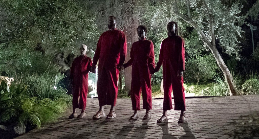 Adelaide Wilson, her husband Gabe and their two kids Zora and Jason are headed to their holiday home in Santa Carla for some peace and quiet despite Adelaide having a traumatic experience at the beachfront as a young child. Despite a weird feeling in the air, everything seems peachy until the first night when the Wilson’s are besieged by a beastial family wearing identical red jumpsuits and welding razor sharp scissors who imprison them in their home for the purposes of a ritualistic style murder. However, these are no ordinary home invaders as the Wilson’s realize that their captors are menevolant doppelgangers led by the raspy Red, a twisted mirror image of Adelaide herself. Joined by the hulking Abraham, the leering Umbrae and the fire-obsessed, animal-like Pluto, this other family call themselves The Tethered, but is there more to this than a “simple” home invasion or are bigger forces at play here?