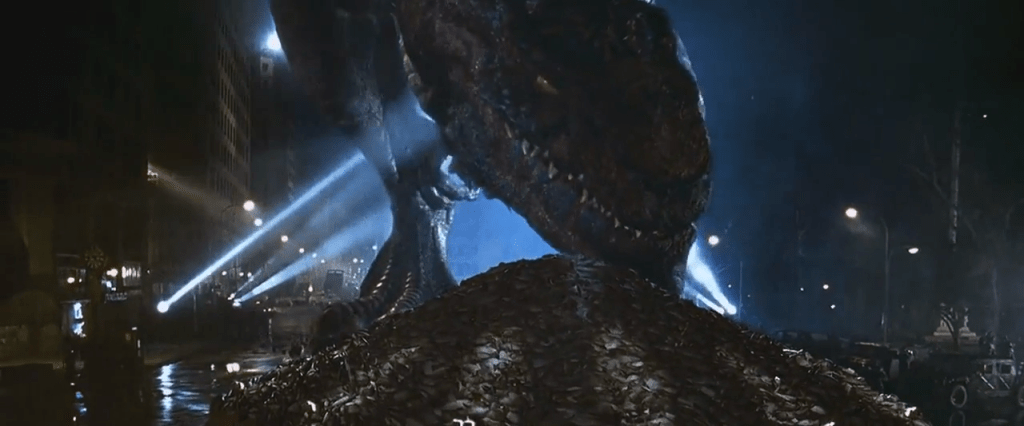 It simply shows that Emmerich and co. has spectacularly missed the point of making such a simple disaster movie out of such an icon with such a rich history. Godzilla’s Shere Kahn chin is fucking stupid too.