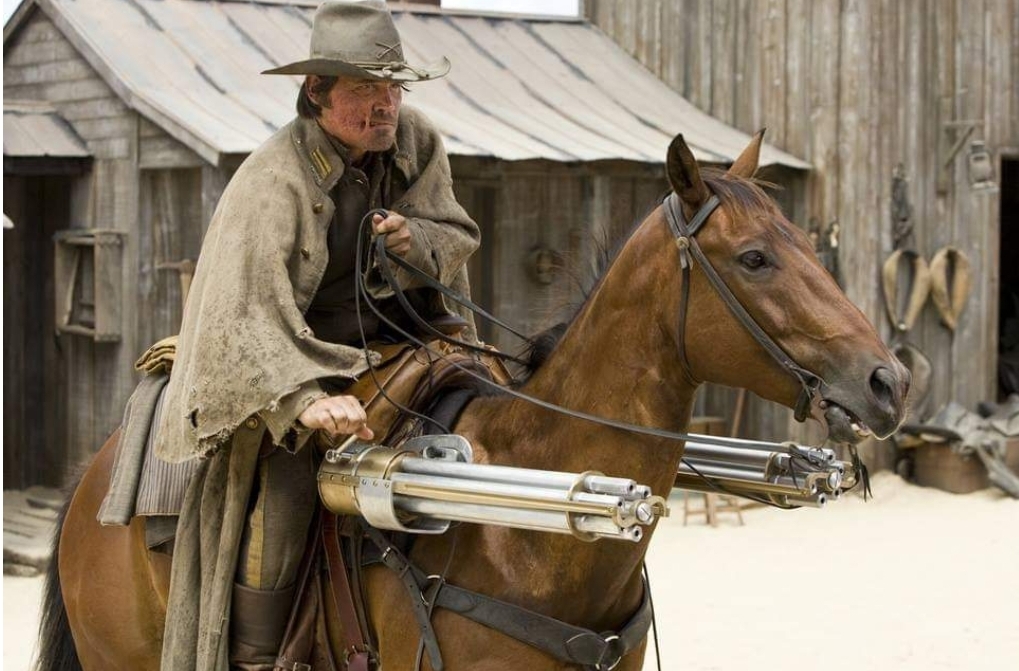 Gaining revenge the the officermurders Jonah’s family and brands his face leaving him with a visage as squiggly as alphabety-spagetti but our hero is brought back from near-death by Native Americans who are never actually introduced. The side-effects to this, handily, are that Jonah can speak to the dead which in turn makes him a keen tracker and a hugely successful and VERY brutal bounty hunter. However, when word gets around that his old boss is still alive and planning terrorist attacks on the 100 year birthday of America utilising cannonballs with the power of a nuclear bomb (don’t look at me, I didn’t write it), Hex is hired by the president to bring down the man who killed his family.