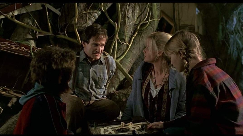 After an 1869 set prologue establishes a mysterious board game getting buried by to freaked out young boys, it’s discovered a century later by Alan Parish, a put upon child who alternates his days between getting bullied and striving to please his stern, pillar-of-the-community father. Such a life has left Alan prone to flee from his troubles whenever shit gets even remotely real and utter resistant to responsibility but when he sits down with a friend and plays the jungle themed “Jumanji” game he found he finds a problem he can’t run away from. You see, Jumanji is magical and every roll of the dice has very real and VERY dangerous consequences which manifests when a fateful landing of the dice means that Alan is sucked into the game until his playing partner rolls a five or eight. This doesn’t happen however when his understandably traumatised friend runs screaming from the house and the game isn’t found again for TWENTY SIX YEARS when a woman buys the Parrish house with her orphaned niece and nephew.
