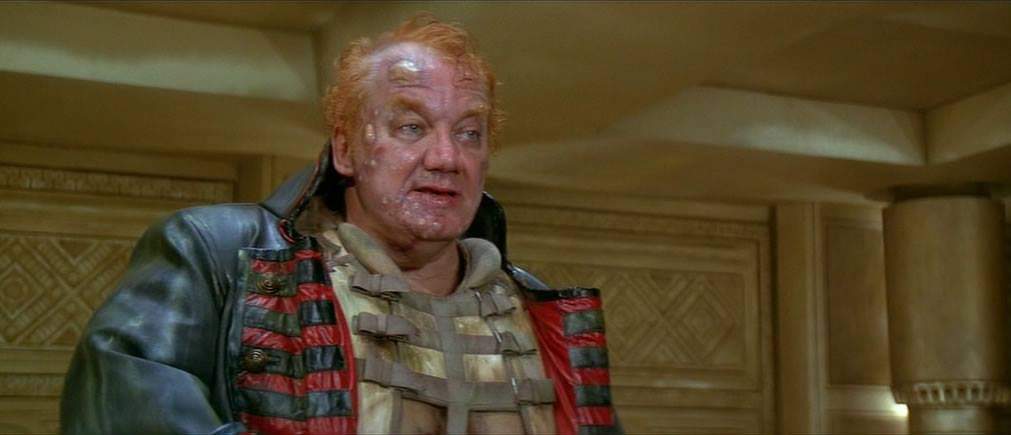 Then there are the Harkonnens led by a boil covered, scenery chewing Kenneth McMillan as the Baron who, when not floating around on his flying harness, screaming incoherently and sexually assaulting/murdering young men on his staff (I’ll state it again – they made TOYS for this film) is a truly nightmarish presence. It’s also “helped” that he’s flanked by Lynch regulars Jack Nance, Brad Douriff and, for some reason, an utterly ripped, carrot-topped Sting posing in a pair of rubber pants…