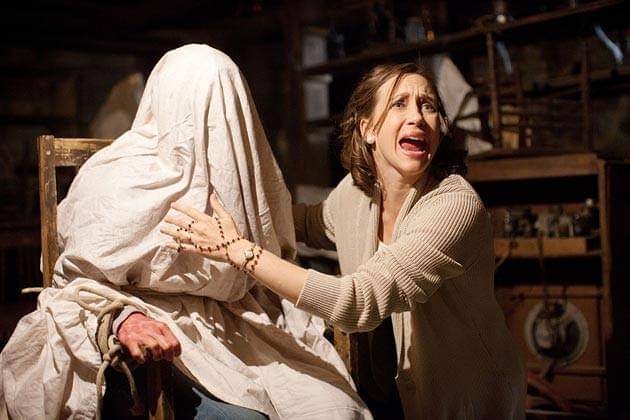 The Perron family, made up of husband Roger, wife Carolyn and an onslaught of young daughters of various ages have just moved into their new house in Rhode Island but it isn’t long before they realise that they may be pulling a house-share with a malevolent who won’t do it’s share of the dishes, is a nightmare to get rent from and who… oh yeah, launches an all out assault on the girls by pulling the same slammy door shit we’ve seen a trillion times before. Unable to move and living at their wits end as some of their daughters are driven into a hysterical state by spotting strangers standing in the corner of their bedroom and other start to have very intense “imaginary” friends, the Perron’s start desperately looking for help.