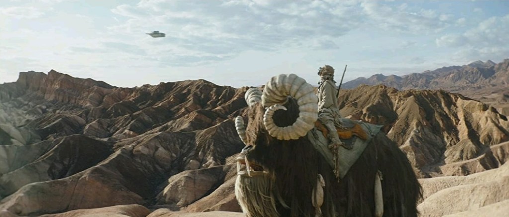 When Din arrives at Mos Pelgo he meets a local lawman dressed in Boba Fett’s Mandalorian armour and for the first time in Star Wars history we see a character that originated in the books make a live-action appearance. Cobb Vanth (played by professional TV cowboy Timothy Olyphant), a minor player in Chuck Wendig’s ‘Aftermath’ trilogy, takes centre-stage in the episode. But not only that, he’s riding a speeder bike that appears to be made from one of the engines from Anakin Skywalker’s podracer, and they are hunting a Krayt dragon (a creature that we have only seen as a skeleton before at the start of ‘A New Hope’), and they are aided by Tusken Raiders who ride their banthas in single file to hide their numbers. You can just imagine a young Favreau acting out the basics of this in a sandpit with his Boba Fett and Tusken Raider (or, as it was politically incorrectly called, Sand People) figures.