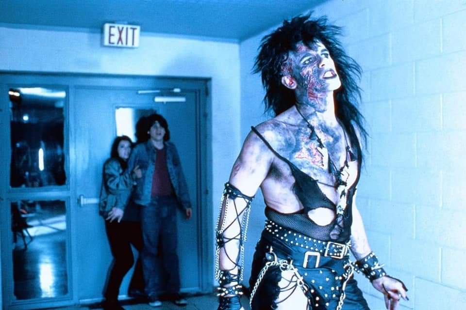 Eddie is your typical high school outcast; mercilessly picked on by the rich kids for being weird his only outlet is to drape himself in sleeveless black shirts and way too much denim and rock out to his hero, cockatiel mulleted musician and self proclaimed rock’s chosen warrior, Sammi Curr. After being the victim of a prank even the kids from Carrie would seem too much, the world desires to shit on Eddie that little bit more when he finds out that his hard rocking idol has died in a hotel fire the week he was supposed to return to his home town for a Halloween gig. Of course, at this point we should be worried that Eddie’s got a fair chance of snapping like a twig and striding into his school the next day with an AK-47 but luckily school shootings wasn’t in vogue back then – no, instead Eddie manages to get his hands on an exclusive Sammi Curr record that contains a song previously unreleased which, when played, allows the malevolent metaler’s spirit to avenge Eddie’s bullys from beyond the grave. However, after Curr’s influence unsurprisingly grows dangerous, Eddie realises that his former hero’s thirst for revenge goes way beyond protecting his biggest fan and that this supernatural singer has dark plans in store for the whole town when Halloween finally arrives…