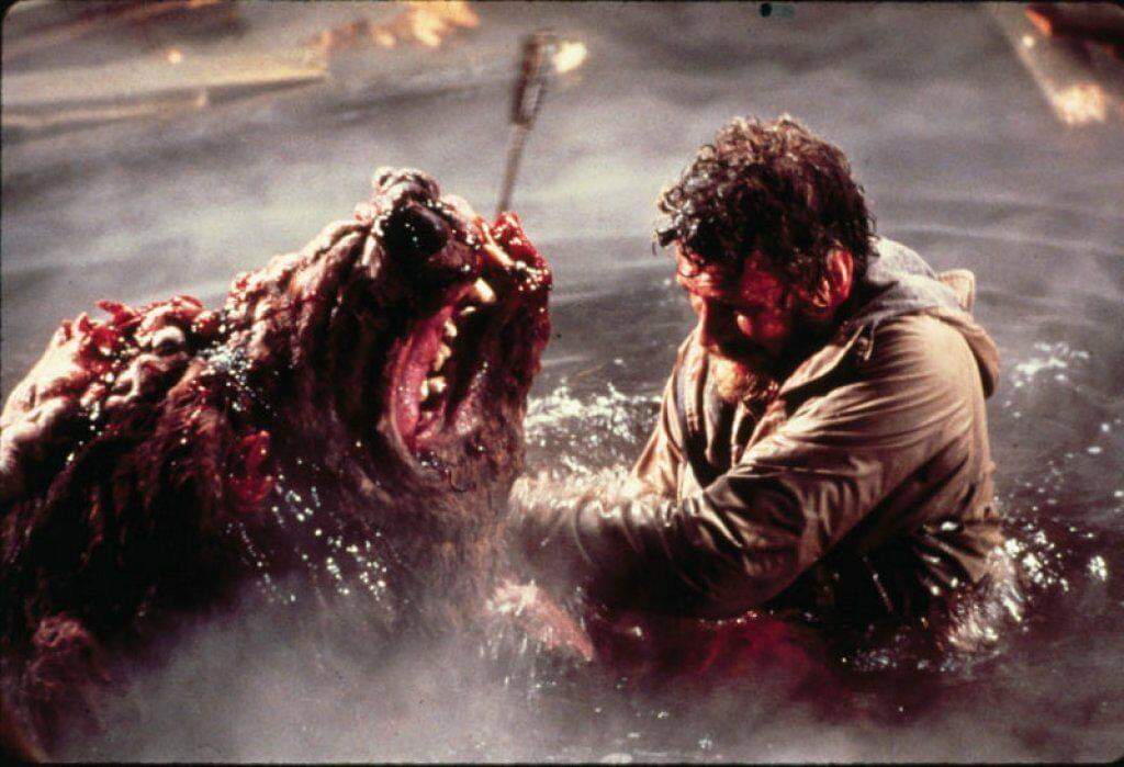 Dr. Robert Vern feels like he’s beating his head against a wall in his current job of holding slumlords to task in urban slums but in order to affect some “lasting change” he accepts a job from the Environmental Protection Agency to write a report about a dispute between a logging operation and a Native American tribe in Maine. Bringing his wife Maggie along he’s met by Bethel, the garrulous and not-at-all shady director of the paper mill who immediately starts blaming all the combined native tribes (dubbed O.P’s for Original peoples), claiming they’re a violent troublemakers. The head of the O.P’s, John Hawks, claims otherwise but that doesn’t stop him getting into a provoked chainsaw vs. axe fight with a thuggish lumberjack the first time the Verns meet him, but as the film goes on it seems that something’s rotten in the state of Maine. The pollution from the local paper mill has been polluting the shit out of the area for over 20 years which has lead to some startling mutations within the local wildlife. Starting off with the Verns fending off a psychotic raccoon attack (Robert beats the fucking thing to death with an oar and then slings it into the roaring fireplace) and then encountering huge salmon and a tadpole the size of a bullfrog, these prove to be the least of everyone’s problems when it becomes apparent that a gargantuan, mutant, monster-bear has been stomping around tearing people into easily digestible strips.