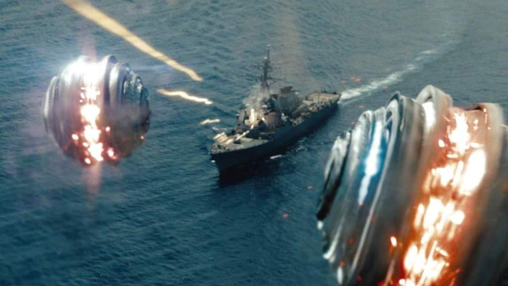 While you openly wonder if anyone from NASA has ever watched an alien invasion movie in their lives, we jump ahead to 2012 and the younger Hopper brother has somehow managed to excell in the Navy despite being as big a jackhole as he always was, but he’s also managing to hold a relationship together with Sam, the daughter of Liam Neeson’s terrifying Admiral. However, while predictably screwing up during RIMPAC, the international maritime warfare exercise, Alex is on the verge of being discharged when alien craft, using the NASA signal as a beacon descends on earth tearing Hong Kong a new asshole and covering a large portion of the coast of Hawaii under a huge force field. Inside this force field are three battleships and a trio of water-dropping alien hovercraft and they have to indulge in a hugely destructive game of cat and mouse while an extra terrestrial strike team split off to capture the NASA installation for their own, invasion-y ends. While Alex, Stone and their various quirky ship mates fight for their lives in this real life game of… well, Battleship, physical therapist Sam and her belligerent patient, the multiple amputee Mike, are caught up with the invader’s ground force.