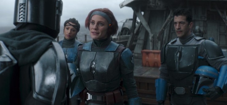 So far, of the pre-season rumours of what and who we are going to see, three ‘leaks’ have been true and one false. We’ve had Boba Fett, Cobb Vanth and Bo-Katan but Mercedes Varnado (Sasha Banks) isn’t playing Sabine Wren. The big rumour of Ahsoka Tano appearing does appear to be confirmed as Bo-Katan giving Din directions to find her.