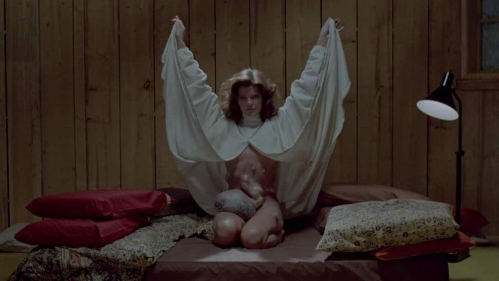 Frank Carveth, a man who’s clearly gone forward in time and stolen Sebastian Stan’s bone structure, is in the middle of an exceptionally custody battle with his wife Nola for their quiet daughter Candice. Matters are made all the worse by the fact that Nola is quite seriously disturbed due to how she was treated by her own mother as a child and is currently in the middle of a highly experimental therapy known as Psychoplasmics at the hands of Dr. Hal Raglan. Now, anyone who is even remotely familiar with the works of Cronenberg knows that the mention of “highly experimental therapy” usually is sign that things are about to go spectacularly tits up and sure enough Raglan’s new technique, which requires people with mental disturbances to work through their suppressed emotions through physiological changes to their bodies, looks set to wreak some terrible damage on the lives of all involved. After Frank finds bruises and cuts on his daughter’s back after a weekend with her mother, brutal murders start occuring thanks to weird, sexless, mutant creatures that seem to be twisted versions of bloodthirsty children who seem to be targeting those who Nola has a beef with. As the bodycount slowly rises, Frank starts to find out from other patients of Raglan about the harmful effect Psychoplasmics can truly have on our frail human bodies, but no one could have predicted the freakish side effect it’s had on the increasingly enraged Nola…