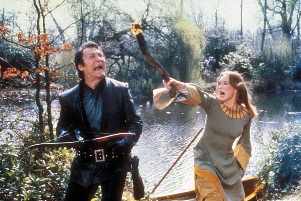 The rest of the cast is a curious bingo card of forgotten British character actors you can’t quite place (Harry Andrews! Patrick Magee! Bernard Bresslaw!) but the good shit – and by that, I mean just plain old shit – is left for Hawk himself who turns out to be an impressive charisma-free zone portrayed by the frozen facial features of John Terry (no, not the footballer, but he WAS in Lost and played Felix Leiter in The Living Daylights if that helps?). Acting – and I use the term loosely – as if he is both emotionally AND physically constipated, he strides through this fantasy cinema equivalent of a thrift shop, barely emoting and one, which actually turns out to be the best thing he could have done as the ungodly merging of disco and folk music that usually kicks off as Hawk rides through a puddle in slow motion, manages to establish the utterly bonkers tone better than Terry’s immovable eyebrows.
