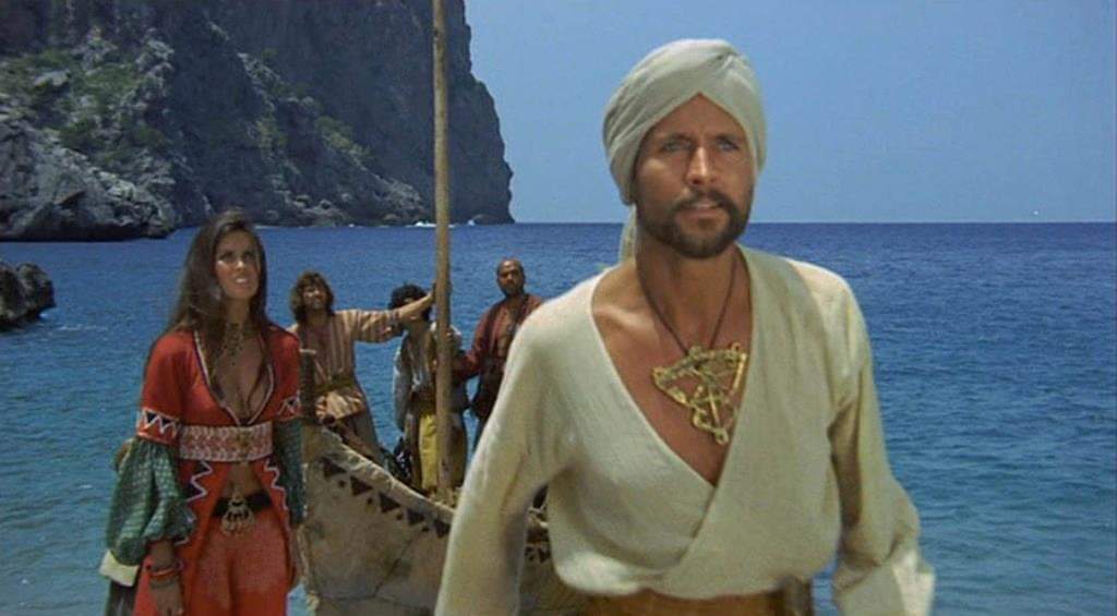 Sinbad’s crew, while hardly memorable compared to the kind of ensemble seen on the deck of the USS Enterprise is nonetheless far more distinct compared to other Sinbad films. Female lead (actually, she’s the ONLY female) and focus of every leering dad who took their kids to the cinema in 1973, cult actress Caroline Munro spends virtually the entire film barely avoiding having her heaving (and permanently oiled) bosom exploding from a selection of super-tight croptops and an unrecognizable Martin Shaw (Doyle from the Professionals) is buried under a porn star ‘tasche and mullet as Sinbad’s number two but unfortunately doesn’t fight monsters by rolling over the bonnet of a brown Rover.
