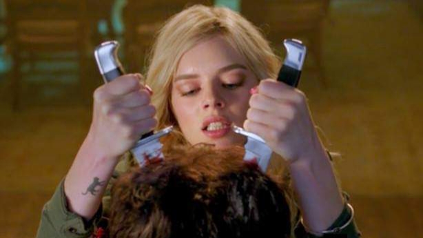 Making up the rest of Bee’s cult are a gaggle of painfully attractive actor who are the living embodiment of faces that make you go instantly to IMDB to find out where the fuck you’ve seen them before. Robbie Amell is the psychotic, buff and noticably shirt resistant Max; Bella Thorne is the stunningly vapid Allison, a girl, who after being shot in the boob is more worried about how unattractive it might make her over the fact that she’s been shot; Hana Mae Lee as Soyna does the same weird-girl shit she’s known for in the Pitch Perfect films; and Andrew Bachelor as the motor-mouthed John is prone to spectacularly catching huge gouts of blood to the face – all do their roles proud and all have magnificent, cheer-worthy deaths.