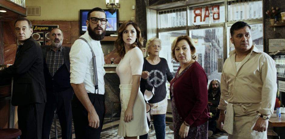 In a run down cafe in Madrid, various people are minding their own business and trying to ignore the smell from local transient, Israel who has come in to beg for change. However, everyone’s day suddenly takes a turn for the stressful when one of the cafe patrons strolls out of the establishment and is promptly shot by a hidden sniper, dropping dead right then and there. At first everyone isn’t exactly sure what actually occur but gets brutally brought up to speed when a good samaritan from their ranks dashes outside to help and then also gets his hair fatally parted by a high-caliber bullet. Realising that not only are they being specifically targeted by a mystery assailant but also the streets are bizarrely deserted; the eight people left in the bar start to theorize, panic and point fingers at each other in rapid succession not only thanks to the fear coursing through their veins but the very real prejudices that they have of their fellow captives.