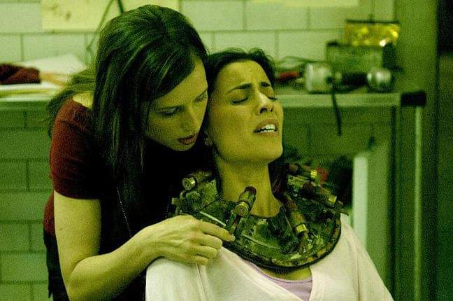 Not coming up short is the ramped up traps which go a long way towards making the third installment one of the noticably more brutal entries to date. Rings are ripped out of flesh, ribcage are torn asunder once a time runs out and one luckless shit falls foul of something ominously called The Rack which proceeds to twist his limbs to beyond breaking point like a psychotic child with a chicken bone and we all get to enjoy them while the camera stubbornly refuses to turn away. Top of the grots, however is a showstopping sequence where Dr. Denlon has to perform open brain surgery on a still conscious Kramer with an array of workmen’s tools that’s way more DIY than NHS and the film takes predictable glee in getting right into the brain matter as the audience presumably dry heaved into their popcorn.