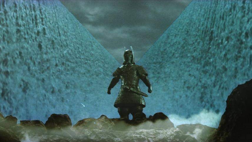 Even though the similarities are obvious, the main deviations still manage to stand out chiefly the location, which takes place primarily on and around the lake where our slumbering statue has made itself at home and allows for more blues to enter the already lush colour palette. In fact, the visuals are still on point and Daimajin trilogy still manages to be quite unlike any other Kaiju series that exists thanks to it’s samurai based shenanigans still blending suprisingly well with it’s monster stuff. The story is still engrossing and it’s still a genuine thrill when Daimajin returns from apparent destruction, rising from the lake and separating it Moses style to show his enemies he’s really not in the mood to fuck about. It’s a fabulously showy entrance that kind of makes the demon God as wildly flamboyant as a giant Liberace, but when he gets down to business while stomping around, glaring at everyone with the steely glare of a 25 meter tall Charles Bronson, but still manages to hit the dramatic high notes with images that look torn right out of a renaissance painting. Watch as a second attempt to wipe out the Japanese Golem with explosives leaves the overconfident bad guys cheering at a large cloud of dust, but when it starts to clear we get the awesome, bowel-emptying image of the monster silhouetted against the sky as he was only dramatically pausing – the big old drama queen.