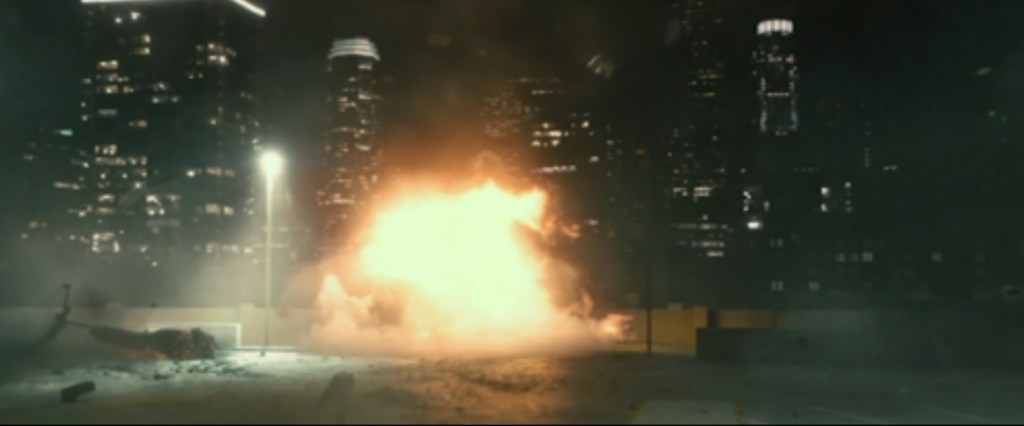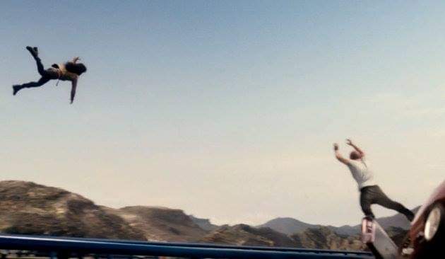 One of the main reasons that the climatic safe chase and the earlier car surf off the cliff from Fast 5 not to mention the awesome jail break from part 8 hasn’t been included here is that the scenes are shot and executed so well your brain actually wants to believe they could actually happen, whereas the crimes against reality featured here manage to pull you out of the movie because of how admirably brazen they are in their defiance of common sense. One such prime example comes at the end of Furious 7 where after defeating the vengeful Deckard Shaw in a wrench fight (just go with it), Dom still has to take out drone owning warlord Jakande. Driving right at the villain’s helicopter as the parking structure he’s in collapses like a giant house of cars, he hits his nitro and jumps his car in a testosterone fueled homage of the fourth Die Hard movie – only to miss and crash spectacularly. But wait, he’s only gone and somehow dunked a bag of explosives on the chopper as he flew past like a suicidal Harlem Globetrotter that the mountainous Hobbs promptly shoots thus callously stealing from Dom’s baddie killing tally. Yes, the scene isn’t anywhere near as ludicrously deranged as the Dubai jump or the parachuting cars, but at least those two moments are startlingly original. There’s something about defeating a big bad by simple doing a jump that seems just as lazy as it is scoff inducingly spectacular. Bending the rules of physics has never felt so ordinary.