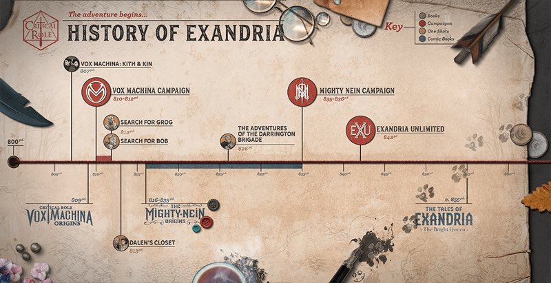 Also announced was an awesome new Timeline image for fans to keep track of where the shows, books, comics etc all fit into the Critical Role saga. What is most interesting is how the new series takes place nearly ten years after the end of The Mighty Nein story. Could we be seeing Yasha or Caleb again?