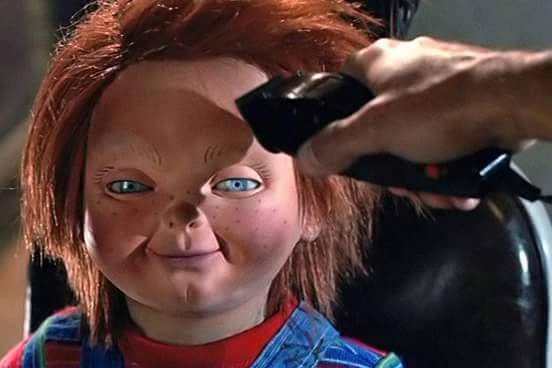 “Why does that look so familiar?” Openly wonders Chucky in the wake of this Hellraiser-style facial.
