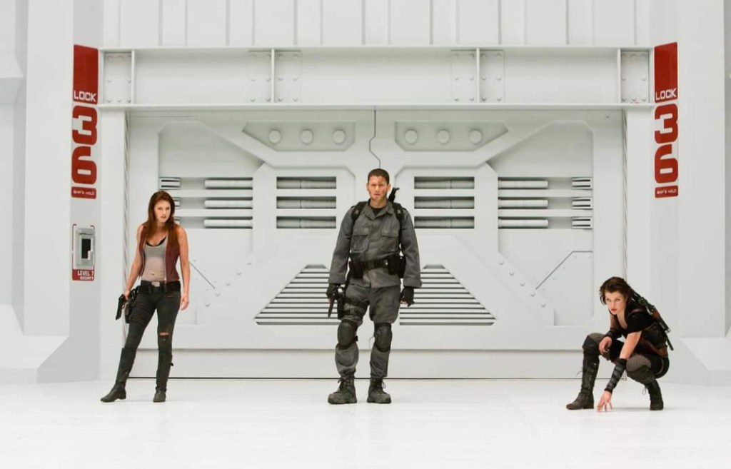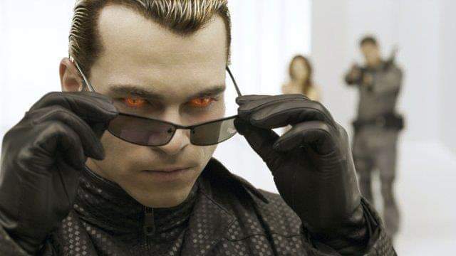 Following the events of the previous movie, two things become clear: 1) the previous claim that the world has become a sandy wasteland thanks to the deadly T-Virus is obviously utter bollocks, and 2) Alice’s clone army teased at the end of Extinction was too expensive to make it past the opening sequence; and so after a few months of wiping out various strongholds of the nefarious Umbrella Corporation, Alice loses her clones in a battle with the villainous shades spokesperson Albert Wesker who also takes away her super powers for good measure.