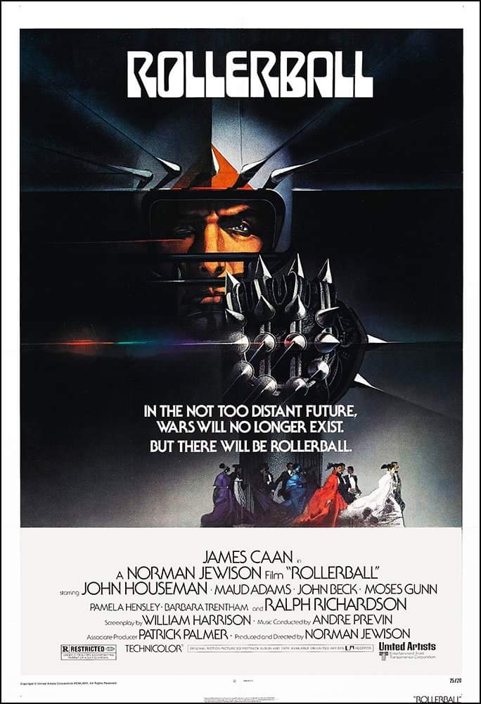 Roaring into this arena on a heavily armored dirt bike with a bloodied James Caan clinging tenaciously to the back is Norman Jewison’s face breaking Rollerball, a movie that follows all the corporations-are-king plot tropes but follows it up with some superlative, smash-mouth action.