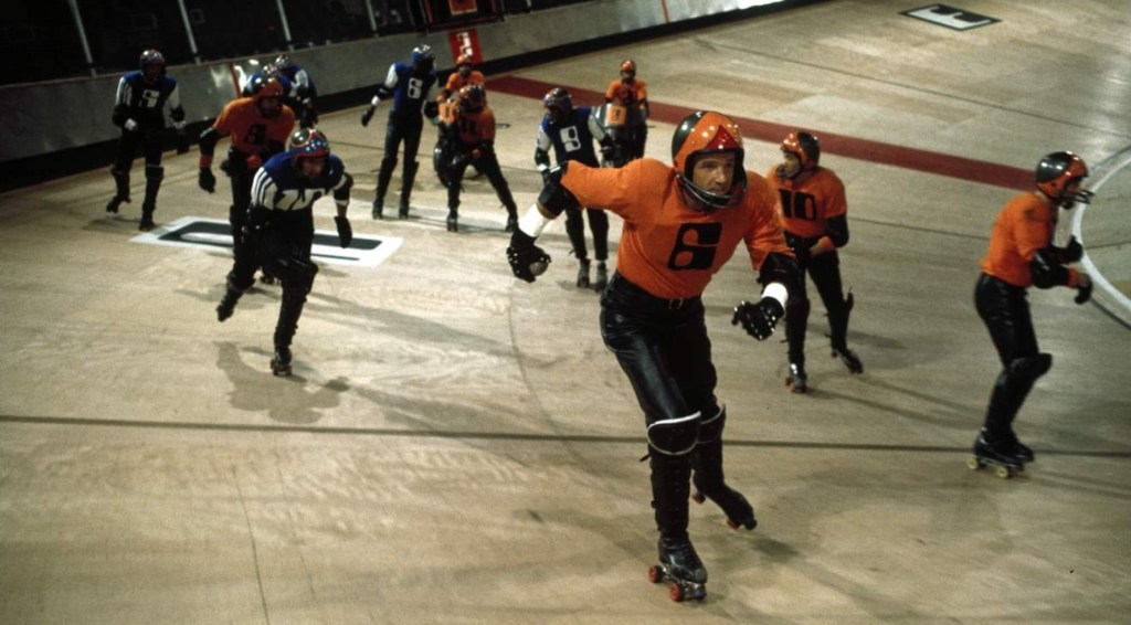 It’s also here where James Caan shines and while it’s initially odd to see Sonny Corleone roller skating for his life, he makes his physically gifted lead a quiet, understated presence out of the arena and a fucking god of war inside it. Jonathan E admittedly isn’t the brightest bulb on the scoreboard, but he’s smart enough to know that he’s a little worm on a big fucking hook and his attempts at getting to the bottom of things are as stilted and uncertain as he is. But when he’s whizzing around the game, splattering whatever opponent is foolhardy enough to get between him and the scoring zone, his defiant integrity kicks in and he’s the most confident man who ever laced up skates.