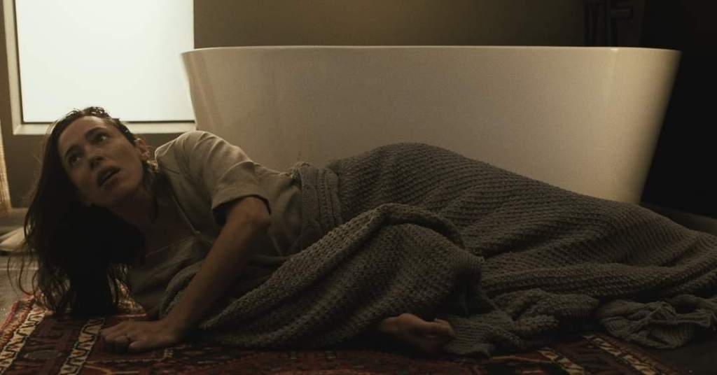 As her friends try to offer weak platitudes in the face of her growing bitterness, Beth stumbles on a few unsettling things with the first being the discovery of photographs taken on his phone of other women who look suspiciously like her. Soon other disturbing facts come to light such as the plans for a inverted version of the house that sits directly across the lake from the one he made for them. Unsurprisingly, this leads Beth to think Owen may have had a sinister secret life, one that very well may have chilling ramifications about the man she thought she knew. However, far more alarming is the fact that Beth is becoming increasingly convinced that there is some sort of supernatural entity lurking in her house and it’s getting increasingly more familiar. Be it slamming on the stereo at full volume during the wee hours of the morning or leaving bloody footprints all over their dock, is Beth’s grief mixed with Owen’s apparent infidelity warping her grip on reality or is there actually a ghost trying to give her a message from beyond who may actually be her dead husband?