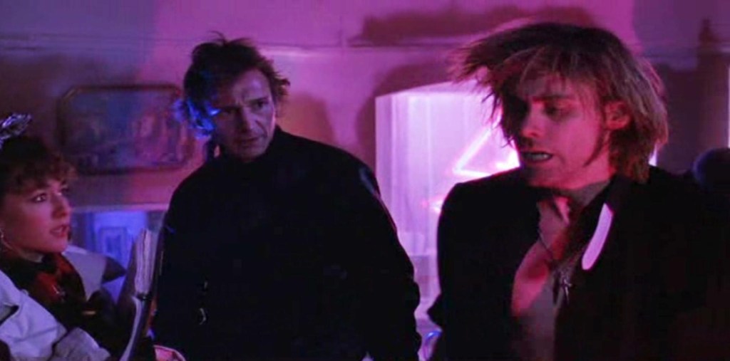 Despite containing all of the usual casual brutality that goes on in your average Dirty Harry flick, The Dead Pool manages to easily be the least of the series chiefly because at this point its impossible to take them remotely seriously any more. Big Clint can easily outrun a man half his age, can out draw anyone who stands before him and still has enough cajones to make Patricia Clarkson’s reporter not only fall for him, but even manages to reverse her opinion on the morals of her job despite the fact he shot up a crowded Chinese restaurant barely a day earlier. The movie even has composer Lalo Schifrin give Callahan a triumphant fanfare as he emerges from a car wreck to blow away his would be assailants, which is all the more damning when you realise that the vastly superior In The Line Of Fire was barely five years away, but not everything can be squarely laid at the feet of Eastwood. While the film admittedly tries something different with it’s bad guy this time – choosing to use a more whodunnit style approach to the usual serial killer shenanigans – it’s still as horribly overblown as a Simpsons parody with a wildly overacting antagonist who is neither scary or particularly interesting. The soon-to-be famous supporting cast don’t manage to help matters much either as Jim Carrey, who tackles his role of strung out, junkie rock star Johnny Squares with the same level of self control he brought to Ace Ventura and the Grinch, has a gurning, death scene freak out that is impossible to take seriously. However, that turns out to be the very model of subtlety compared to Liam Neeson’s dick hole of a director who barks his lines in a flamboyant cockney accent while wearing an astonishingly bad ponytail.