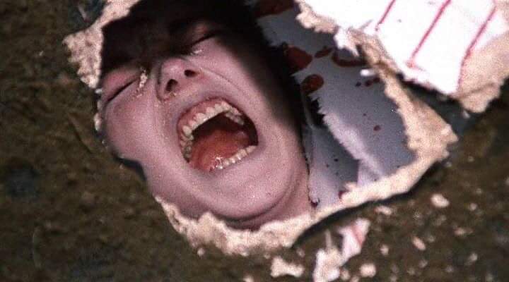 Another thing that stands out about the movie is the showstopping setpieces that Fulci became famous for which not only includes the aforementioned throwing up of intestines and a maggot cloud, but also contains an impressive death by industrial drill and possibly one of the greatest buried alive scenes I’ve ever witnessed as the rescuer’s pick axe repeatedly tears into the coffin inches from the suffocating victim’s face.
