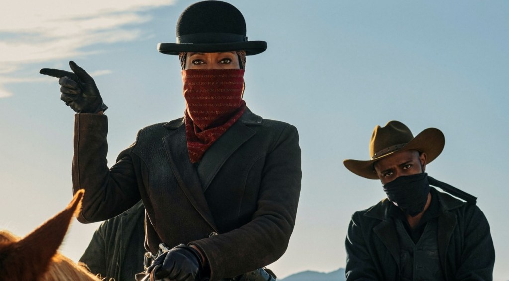 Playing the lead role of Nat Love is Jonathan Majors so was last seen fucking the multiverse up beyond all repair in Loki and wreaks similar havoc on the old west and it easy to see why the actor is blowing up all over the place. Gifting the character with innate goodness despite his morally dubious choice of lifestyle, he’s joined by a stable of actors who are obviously relishing their chance to play outlaws and arguably the one who’s enjoying things the most is Regina King as “Treacherous” Trudy who has a steely glare locked onto her face at all times and who has an amazing climactic brawl with one time Domino, Zazie Beetz. Everyone tackles their roles with gusto (always a pleasure to see Delroy Lindo) but if I’m being honest, I was hoping that Idris Elba’s brooding villain would be a little more active thanks to his time spent cooly flinging bullets in the Stephen King misfire, The Dark Tower, but he still brings that trademark presence of his to proceedings.