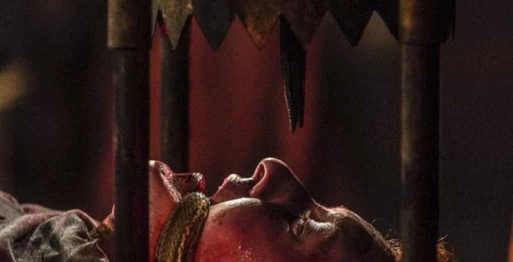 For those of you who stayed, I have to proclaim the film as being one of the most derivative horror movies I’ve seen in a while – however, this is actually, for the most part, by design aftercwe find out exactly what’s actually going on. The opening hour literally empties a huge bucket of undending visual and spoken references to other movies (some classic, some modern) that runs virtually constantly, no matter what actually is occuring on screen. The group bare more than a passing resemblance to the clutch of van riding hippies from The Texas Chainsaw Massacre (Fabrizio in particular looks incredibly like the Franklin character sans his wheelchair and excessive raspberry blowing), the cult and the riffs keep going from there. Lost in the woods? Blair Witch. Wooden faced cult? Kill List. Torture by ankle shattering? Misery. Death by large, skull boring device? Apostle. The list is literally endless and even the characters suggest that maybe they’ve died in the crash and are currently wandering in the afterlife, I think they’re referencing tge forgotten French, 2003 mystery thriller Dead End. After a while it all becomes a little tiresome for anyone with a half decent knowledge of the horror genre, but directors Roberto De Feo and Paolo Strippoli at least keep the visuals fittingly grim, the tension high and the deaths nice and nasty until we finally get to our plot upending twist.