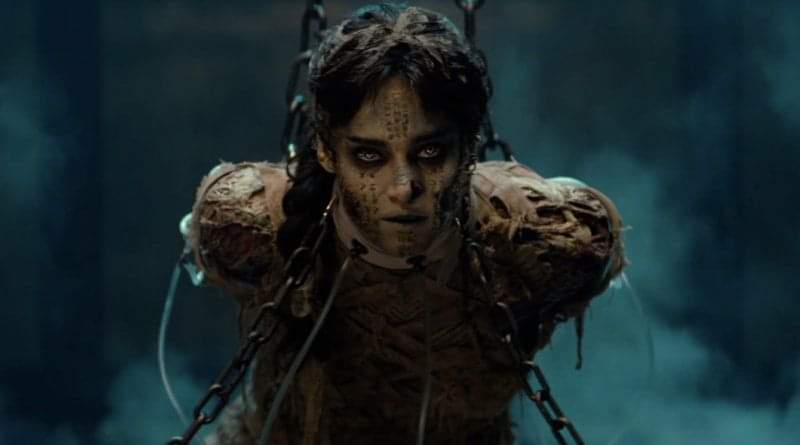 It’s here everything goes a bit mardy – you see, nestled in that sarcophagus are the still living remains of Princess Ahmanet, a young woman who did a deal with the deity Set and murdered her family in order to keep her right to the throne and obtain unlimited supernatural powers. Not only has she already set her sights on using the man who freed her as a human vessel for Set, but she possesses Vail via a spider bite and brings the plane down with a massive flock of enchanted birds.