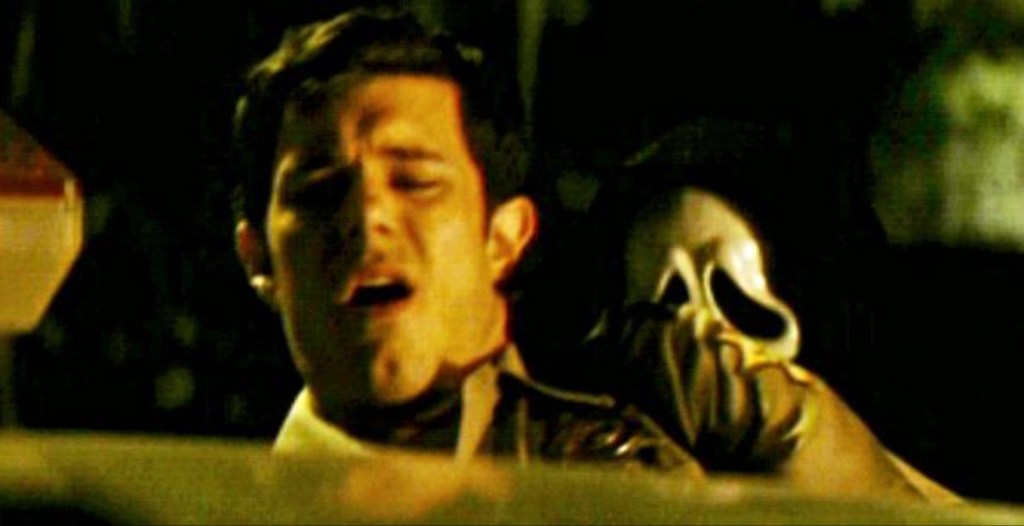 While her boyfriend, Phil, is rapidly bleeding out in a cinema toilet with a sizable hole in the side of his head, Maureen Evans (Jada Pinkett Smith) sits in the main without the slightest clue as to what fate awaits her. Stuck watching a slasher movie she didn’t want to see and surrounded by masked, worked-up slasher fans all waving complimentary plastic knives, she’s initially relieved when Phil returns, however, she’s less than impressed to see he’s wearing a Ghostface mask. If she doesn’t like that, she’s going to hate what’s coming next because “Phil” reveals himself to be Ghostface himself and proceeds to stick a horrified Maureen full of fatal holes while the clueless audience (who are convinced it’s an act to promote the film) cheer him on and scream for blood. As Marco Beltrami’s score goes for broke, Maureen drags her ravaged body up to the screen and howls a death scream as a gradually comprehending crowd catches on in horror in what might well be the slasher genre’s most epic kill.