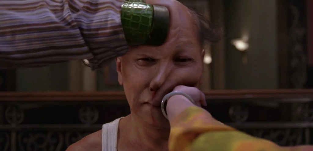 As the feud escalates, Sing sees this as a chance to join the Axe Gang for real, having a strong desire to be bad ever since getting his ass whipped as a child for trying to be heroic, but as Brother Sum insists in bringing in outside martial artists to dispose of the people who have defied him, things begin to get completely out of control and soon he has to resort to getting Sing to break a notorious assassin known only as the Beast out of the local asylum. The Beast, a master of every martial art that exists, has gone insane in the search to find a worthy opponent and finds the challenge too much to resist, but Sing, finally having pangs from his long-dead conscience (he should, he fucking started this whole mess), realises that he should try to put a stop to the hostilities – but how can a two-bit hustler hope to get the attention of the deadliest fighter on earth?