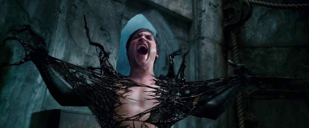 It’s time to get serious, but that’s not gonna to be easy with my next choice. The miscasting of Topher Grace as bitter journalist Eddie Brock caused angry fans to make accusations of “That 70’s Venom” and while he admittedly lacks the necessary threat level needed to portray one of Spidey’s greatest foes, the scene where Peter attempts to violently remove his symbiote infested costume is actually perfect.