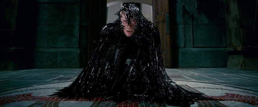 As a remorseful Peter Parker finally realises what affect his black costume is having on him, tries to tear it off in a bell tower while the deafening sonics of the ringing chime help purge the symbiote from his body. Meanwhile, in the church below, a ruined and vengeful Brock pleads with God to kill Peter Parker only to get an instant response in the form or the rejected, tar-like, alien creature treating him like the ultimate rebound. Obsidian tendrils grasp Eddie like needy little hands as they pour into every crevice and even though the finished product was too physically small for fans tastes (Tom Hardy’s version is more the correct size) and was reduced to being a glorified heavy – this moment couldn’t be more perfect.