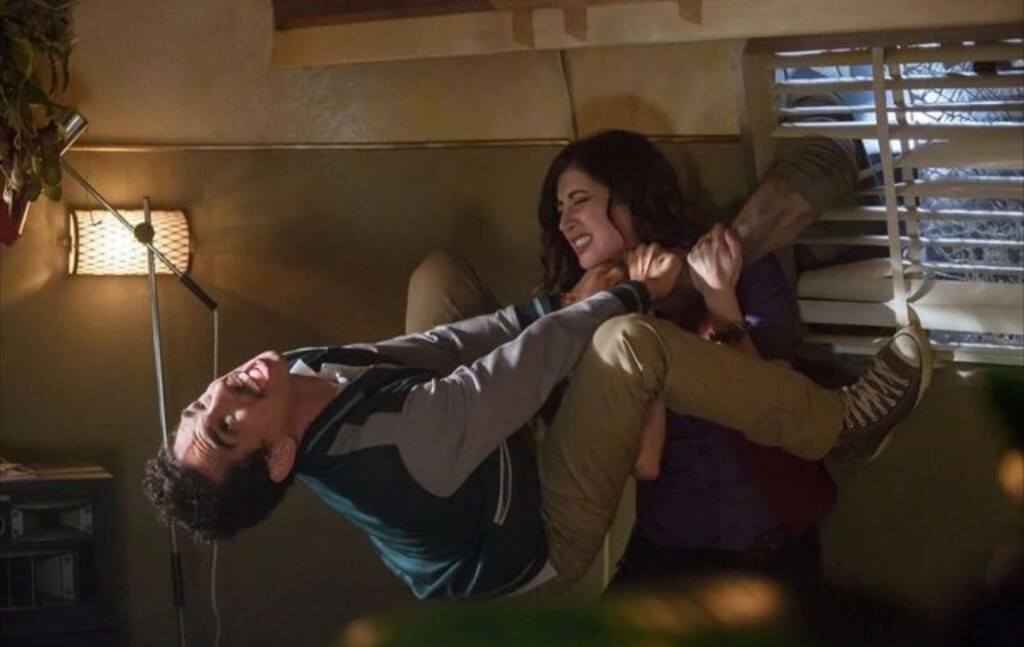 Decades after the climax of Army Of Darkness seen in the US version (the S-Mart ending, not the “I slept too long!” ending), we catch up with a girdle wearing Ash as he slaps on some aftershave in his and heads out to his local watering hole to get him some action. However, a poorly timed vision of a Deadite warning him that the terror will start all over again has him antsy (especially when he belatedly remembers that it’s all his fault) and his first instinct is to get the fuck out of town, but not before he swings by his workplace to see if he can grab his paycheck early. Having being forced to work a whole shift, Ash breaks the news to Pablo, a young man who sees his older counterpart as a source of admiration, who confesses of his feelings for co-worker Kelly whom Ash promptly attempts to chat up – but a run in with a possessed, crazed dolly reminds Ash of the reasons why he needs to leave town, pronto. Meanwhile, Detective Amanda Fisher is in disgrace after she shot her possessed partner in self defence during a run-in with a woman directly involved when Ash inadvertently raised evil once again – they were both fucking stoned and he read from the Necronomicon to impress her with some “poetry”. While she vows to get to the bottom of matters after a meeting with a mysterious woman, Kelly gets a video call from her father claiming her mother, who’s been dead for six months, has apparently returned home and Pablo suggests they go to Ash’s trailer home to get help as he believes that his doughy hero is “El Jefe”, a mystical vanquished of evil – but upon arriving both Ash, Pablo and Kelly are beset by Deadites. Can Ash dust off thirty years of doing fuck all to be the Deadite killing hero that Pablo believes he is?