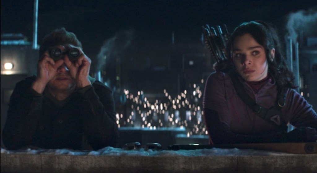 Kate sees that her mother is actually happy with Jack and this inspires her to go and visit Clint. He is without his family at Christmas and it’s all her fault so she decides to keep him company and have a movie marathon with him, something he had promised his kids. They watch ‘It’s A Wonderful Life’, a film about a man who gets a life lesson from an angel when his family are erased from existence, and this opens Clint up. Kate asks him about his best shot and he says that it was the one he didn’t take. To him, his redemption on Black Widow was the best thing he had done in his life and the pain of losing his family was the worst part. This is punctuated by flashback to ‘Endgame’ to hammer it home. Kate, upon seeing his pain, realises that Clint was Ronin.