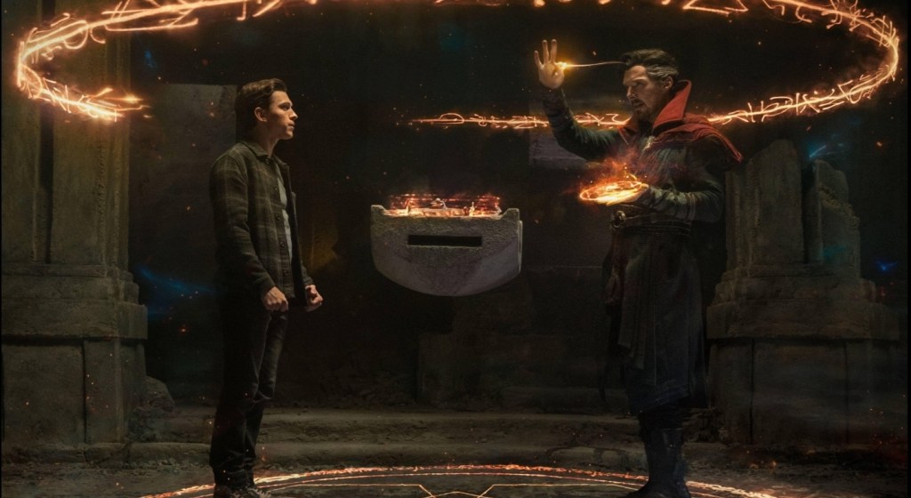 So before this review devolves into mindless fanboy screeching (which I’m prone to do, cos I’m a massive Spider-Man nut), let’s temper things by firstly address the (sort of) negative. Those expecting the perky, colourful exploits of Homecoming and Far From Home may be surprised at the darkness and director Jon Watts has sacrificed some of that beguiling, teen movie, innocence that made the newer movies so much fun in favour of more standard, spandex shenanigans. But then, Peter, MJ and Ned are all leaving school in the hope of moving on to enrole in MIT, so the draining of the happy-go-lucky atmosphere actually fits as they all are becoming adults. Another issue is that to really appreciate some of the character arcs, you really should have acquainted yourself with some Spider-Man movies that just aren’t that good – but again, No Way Home pulls the impressive trick of actually rehabilitating thecworst of them somewhat. Lets see Kevin Feige pull off that trick when they get Fantastic Four off the ground…