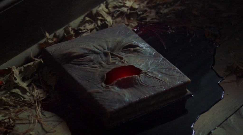 The final character to get a belated moment in the spotlight proves to be the Necronomicon itself, which, after getting soaked in the blood of a dismembered Evil Ash (“Chopping up my my evil clone? Maybe someday that’ll feel weird.”), becomes alarmingly chatty and the moments where Ash actually feels remorse after skinning the thing under Ruby’s orders seem weirdly sweet considering the long history the dufus has had with this wedge of evil literature. Of course, things take a sharp left into shitsville when the disembodied cover decides to fly across the room and affix itself to the face of sweet, innocent Pablo much to the horror of all involved and the final revelation from Ruby that’s it fact she who originally wrote the book means we’re all set for the final episode of the season.
