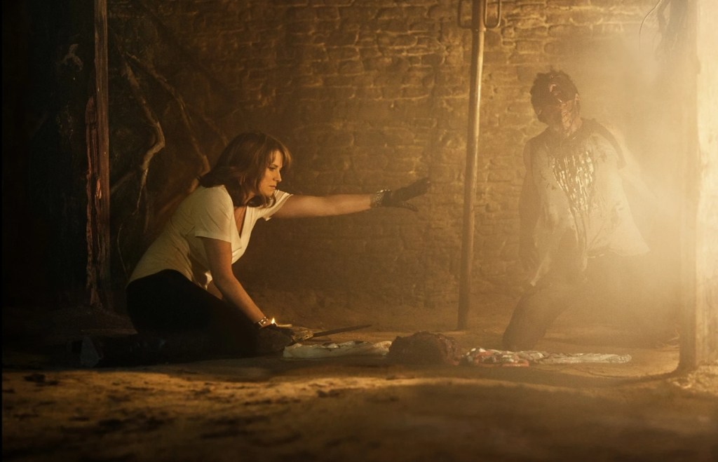 Pablo’s role in this episode is to play a victim as miserable as you could imagine. Semi-flayed by Ruby who needs new pages for the Necronomicon and with the book’s orginal cover plastered to his features tighter than a moisturizing face mask from hell, you really feel a worrying sense of danger for a man who made genuinely be Evil Dead’s sweetest ever character – Kelly on the other hand, trapped outside and desperately trying to fight her way back into the now-living cabin, is trying to save her friends while Heather, trapped inside and desperately trying to get out, is mercilessly brutalized by flying nails and angry furniture. Kelly has really come leaps and bounds as a demon killer in her own right and her tenacious attempts to rescue Heather are impressive as they are ultimately futile and so it’s a goodbye to Samara Weaving as Heather is finally ejected through the front door in pieces. So while Pablo is utterly incapacitated and Kelly manages to fight her way all the way down into the fruit cellar only to be subdued and choked by her book-faced buddy, the last nine episodes have done such an amazing job of warming us to these adorable couple of losers/survivors that we are nail-bitingly concerned for their well being.