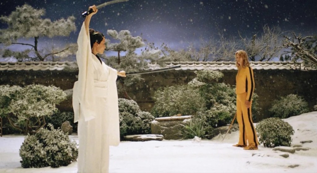 The fact that she has her work cut out for is something of a fucking understatement, but to even the odds (barely) she swings by to persuade Bill’s old teacher and legendary swordsmith Hattori Hanzõ to forge her a blade that will aid her in her bloody quest.
