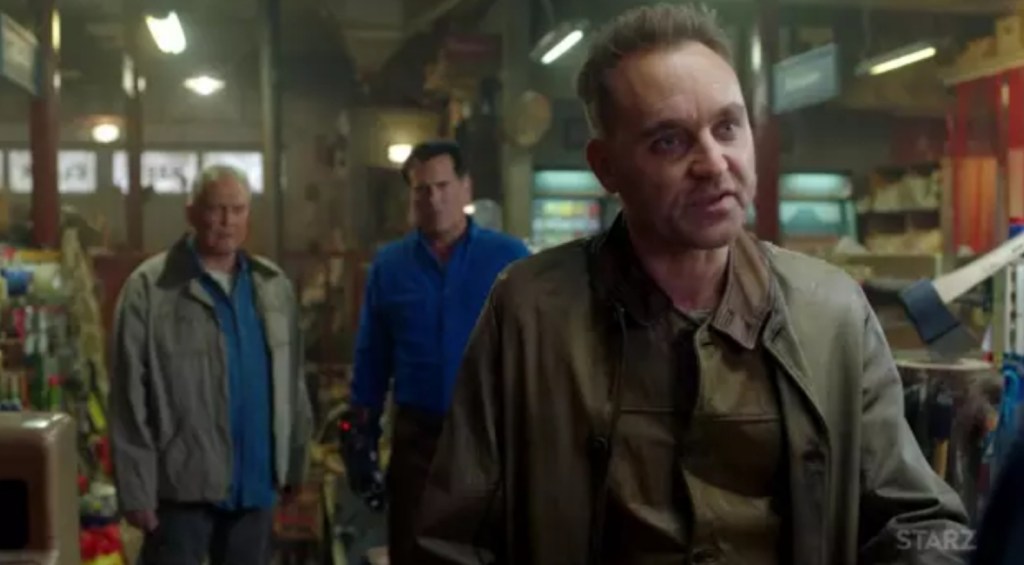 With another episode we get yet another example of why season 3 of Ash Vs Evil Dead is steadily moving the show into more confident waters. The return of Lee Majors’ curmudgeonly Brock Williams continues in full force as his entertaining villain turn from the previous episode gets even better as he now returns again, but this time in the form of a (somewhat) helpful ghost who finally opens up a plot thread left hanging from season two.