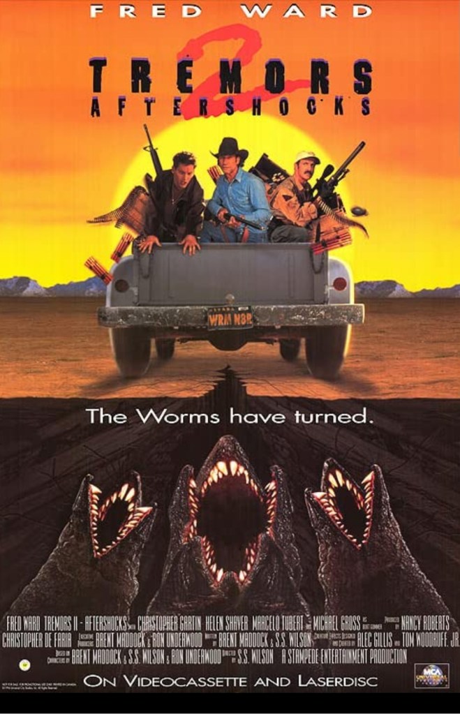 Teaming up with taxi driver and Graboid fanboy Grady, Earl attacks his new day job with gusto, plowing through the giant worm population by blowing them up with dynamite loaded remote control cars, but after getting up to the usual hijinks one does when slaughtering huge subterranean predators, Earl finds that his wormy nemesis’ have a new trick up their metaphorical sleeves.