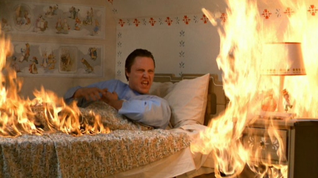 While it doesn’t get much mention these days when people discuss the upper echelons of King adaptations, The Dead Zone is nonetheless far better than most despite its desire to be quietly unnerving rather than going for full blown scares like some of its more hokier peers – but that doesn’t mean that Cronenberg doesn’t leave his talent for unsettling imagery at the door. Walken’s bug-eyed convulsions whenever he is struck by a vision is creepy enough, but a truly haunting suicide by scissors is as freakish as it is illogical.