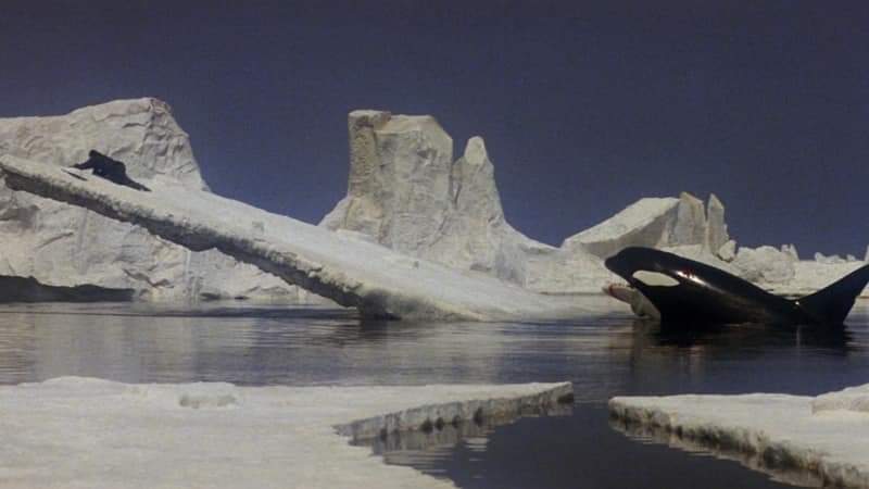 However, his latest get-rich-quick-by-harming-animals-scheme goes spectacularly awry when instead of harpooning a male orca, he misses and snares a female who subsequently tangles herself in the wire, messes herself up on the boat’s propeller and, worst of all, messily miscarries it’s unborn calf all over the deck of Nolan’s boat much to the horror of everybody involved. However, none are as affected as horribly as the female’s mate whose reaction to this atrocity is to go on a kill crazy rampage to get hid revenge and he starts off by getting his teeth around a member of Nolan’s crew. From there, the orca demonstrates some incredible planning skills as he manages to not only destroy numerous fishing boats and sever gas and power lines to the village, but he drives away all the fish in the area which turns all the locals against Nolan. Eventually, the maiming of another crew mate finally convinces Nolan to go out and fight the animal, and so with a rag tag group, he forges out to slay his aquatic nemesis in a battle that’ll take them all the way to the frozen waters of the Strait of Belle Isle where they stage their final stand off.