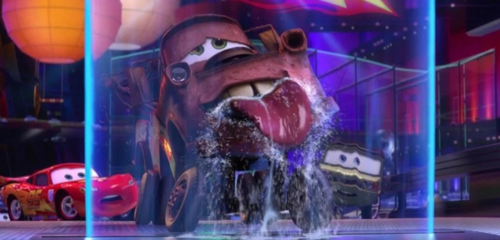 Somehow thrust into a world full of spies, gadgets and an actual body count (cars actually get freakin’ killed in this shit), Mater cheerfully wanders through life or death situations without a single clue to what’s really going on.