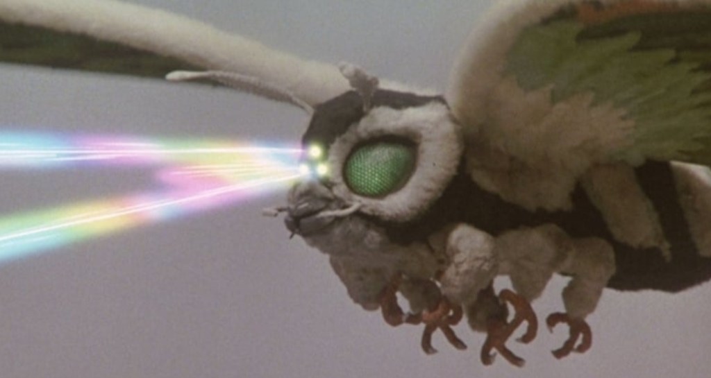 Compared to the majority of her peers, Mothra is usually one of the more deeper Kaiju that exist, but you wouldn’t know it from this candy-hued romp, but while Godzilla and Gamera brought the scale and grit, Mothra still manages to mantain her/his place at the table by being goofy, sweet treat.