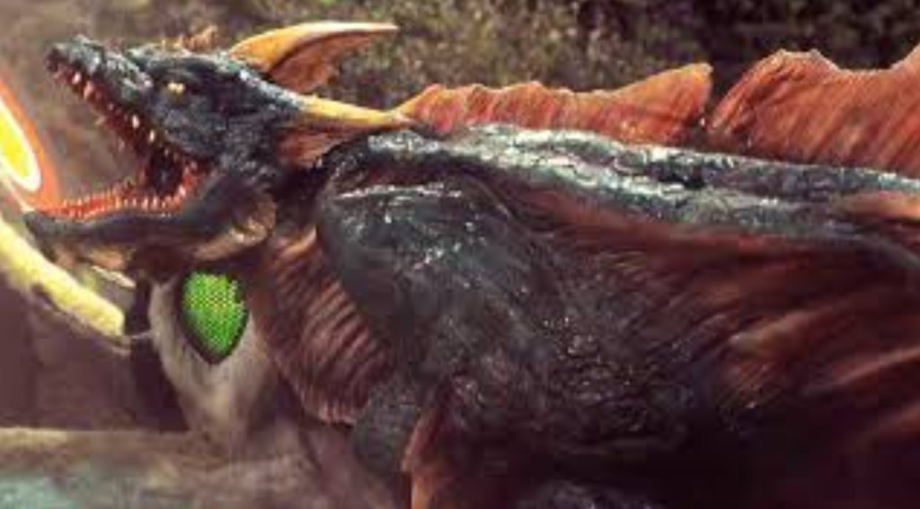 However, when the movie switches location to the maze-like temple of Nirai Kanai, the movie literally becomes nothing more than kids running through endless corridors intercut with a fluffy moth and a rubber dragon fighting to the death that contains more obnoxious noise and endless sprinting than Christopher Eccleston’s entire run of Doctor Who. Needless to say, matters get somewhat repetitive, but most off putting is the fact that Mothra gets less plot than the mildly creepy Ghogo, a bouncing beast who genuinely looks like Wilford Brimley has been reincarnated into a strangely ineffectual Pokemon. With it’s long, witch-like claws, the power of urine that heals (a urophilliac’s dream, surely) and a gangly antenna that looks worryingly like the enlarged pineal gland from From Beyond, the unnerving little sod is a bizarre creation, even for a Kaiju film and even though I’m unsure if this was an attempt by Toho to try and make this unholy bastard the next cuddly toy sensation, praise be goes to whatever deity managed to thwart Ghogo becoming a household name.